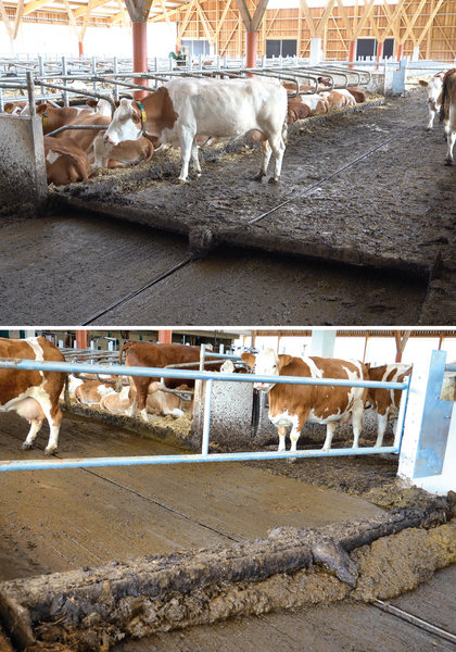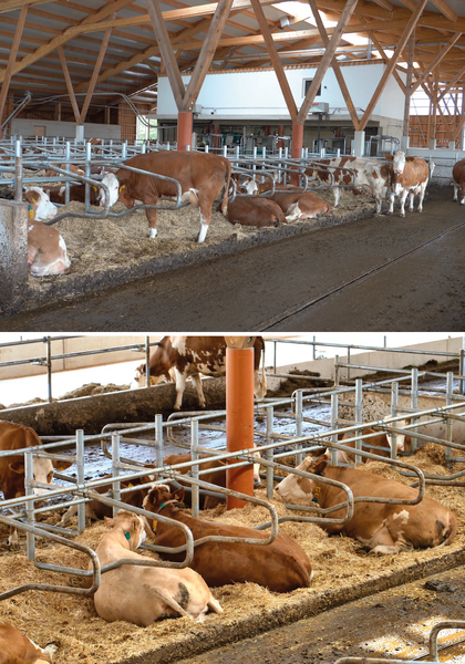 Pre kŕmenie slúžia v niektorých úsekoch zabudované kŕmne zábrany TopSafe, ktoré umožňujú spoľahlivú fixáciu zvierat. Pohybové chodby sú vyhotovené so spádom smerom k odtokovému kanálu – takto sa tekutá časť efektívne oddeľuje od hnoja, čím sa výrazne zlepšuje hygiena v maštali aj zdravie paznechtov.