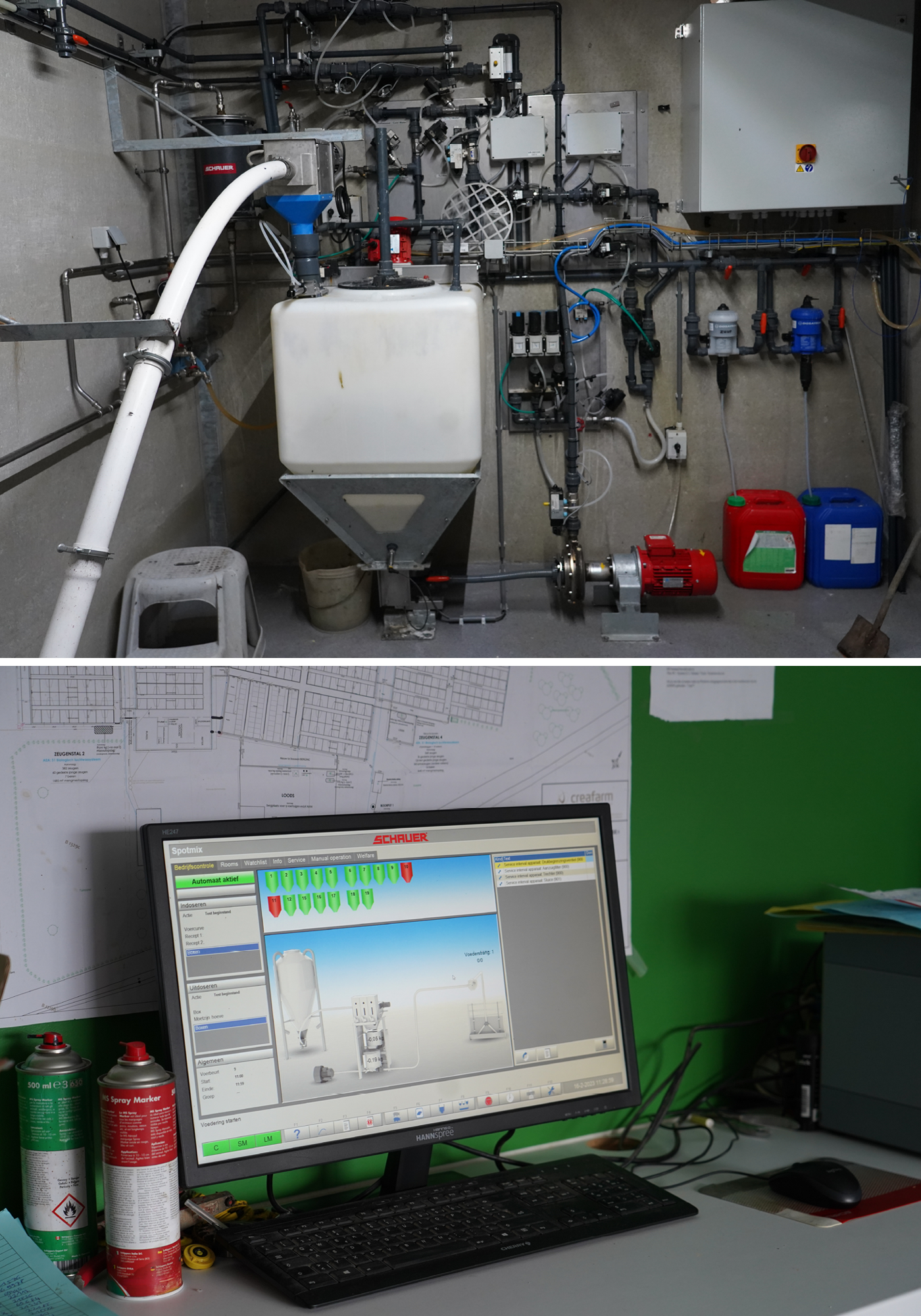 Multifázové kŕmenie Spotmix denne vypočíta a namieša každej skupine zvierat správnu zmes podľa potreby a v správnom čase z 15 rôznych kŕmnych zmesí, ktoré sú plnené do veľkých síl. Okrem toho ten istý Spotmix s pomocou „Welfare-varianty“, distribuuje už nasekanú a prachu zbavenú slamu ako enrichment do kotercov. Zamestnanci podstielku vylepšujú o krátko rezanú slamu v dávkovači.